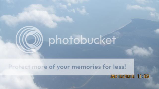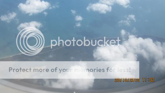 Nhưng chỉ có đám mây dày che khuất nếu không thì biển xanh mênh mông, và hình này là máy bay đã bayđến vùng trời Malaysia rồi đó, hai đất nước này gần nhau, đứng ở bên này với được tay qua bên kia mà...